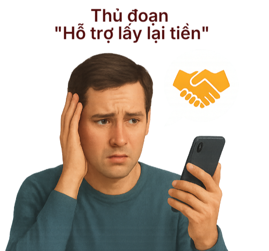 Chúng cam kết hỗ trợ lấy lại tiền nhanh chóng, từ đó yêu cầu nạn nhân sử dụng ứng dụng ngân hàng quét mã QR với lý do xác minh thông tin, truy cập đường link lạ hoặc cung cấp mã OTP.